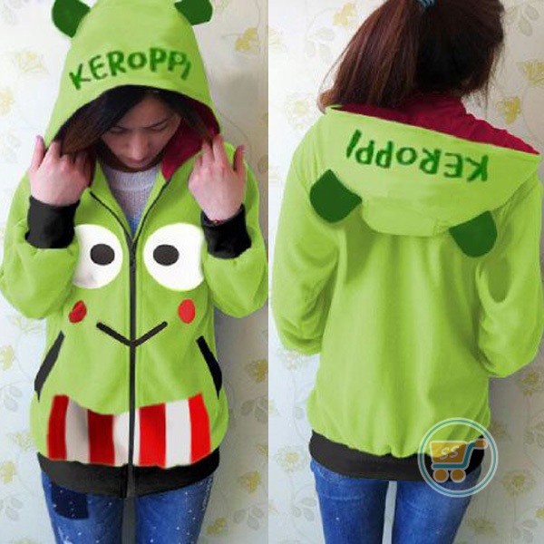 Jaket Keroppi Face Pocket With Ears Blazer Sweater Cewe Wanita Hadiah Shopee Indonesia