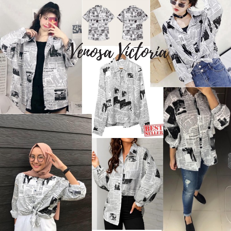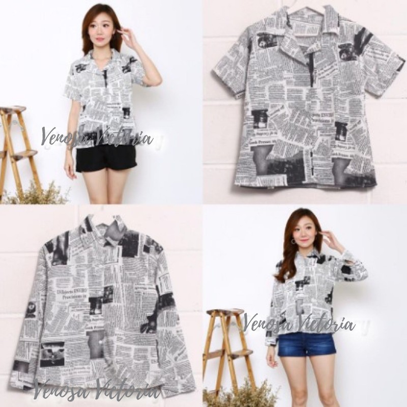 Kemeja Atasan Wanita Motif Koran Newspaper Shirt Baju Motif Koran Shopee Indonesia