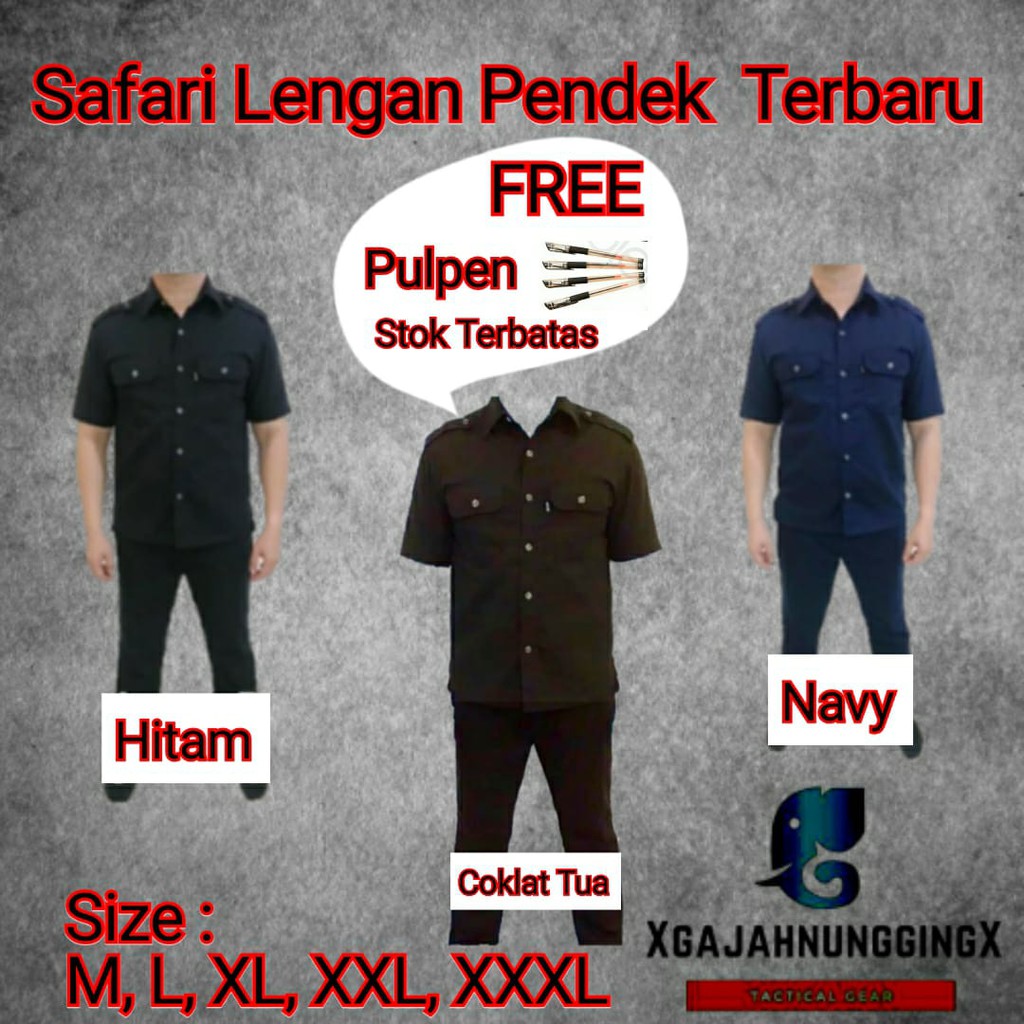 Harga BISA COD PROMO BAJU SERAGAM SAFARI HITAM SECURITYSETELAN SATPAMRp124000. Safari Lengan Panjang - Seragam Safari SecurityRp165000.